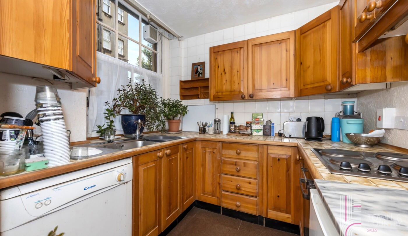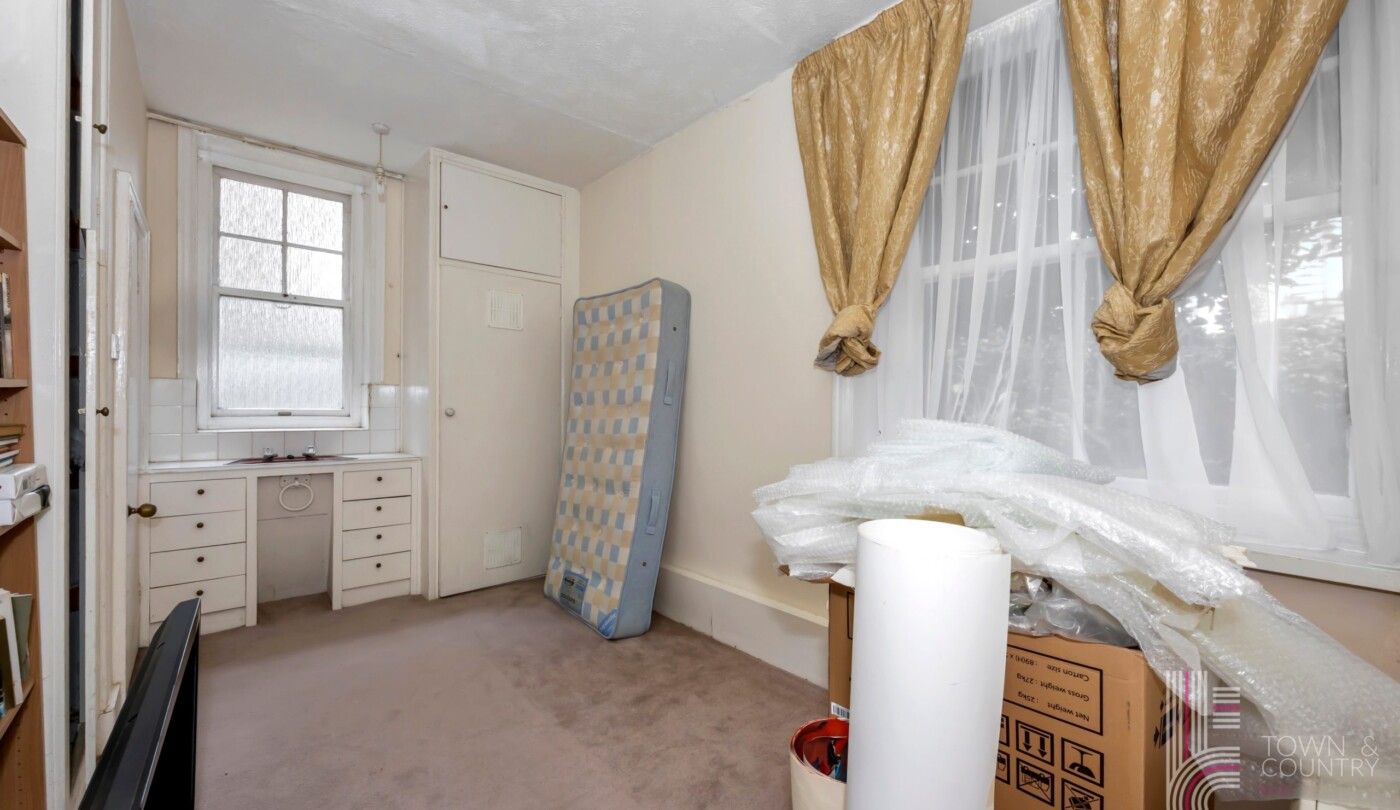 Inside, you’ll find a large living area with period features that add character and elegance to the space, along with two generously sized double bedrooms that provide plenty of room for comfortable living. The layout also includes a separate kitchen, offering a perfect canvas for transformation to suit your style.